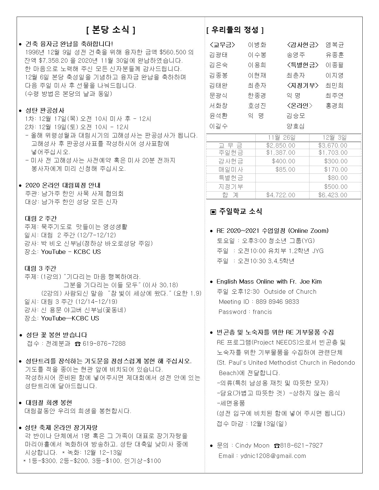 • 주일학교 | Religious Education