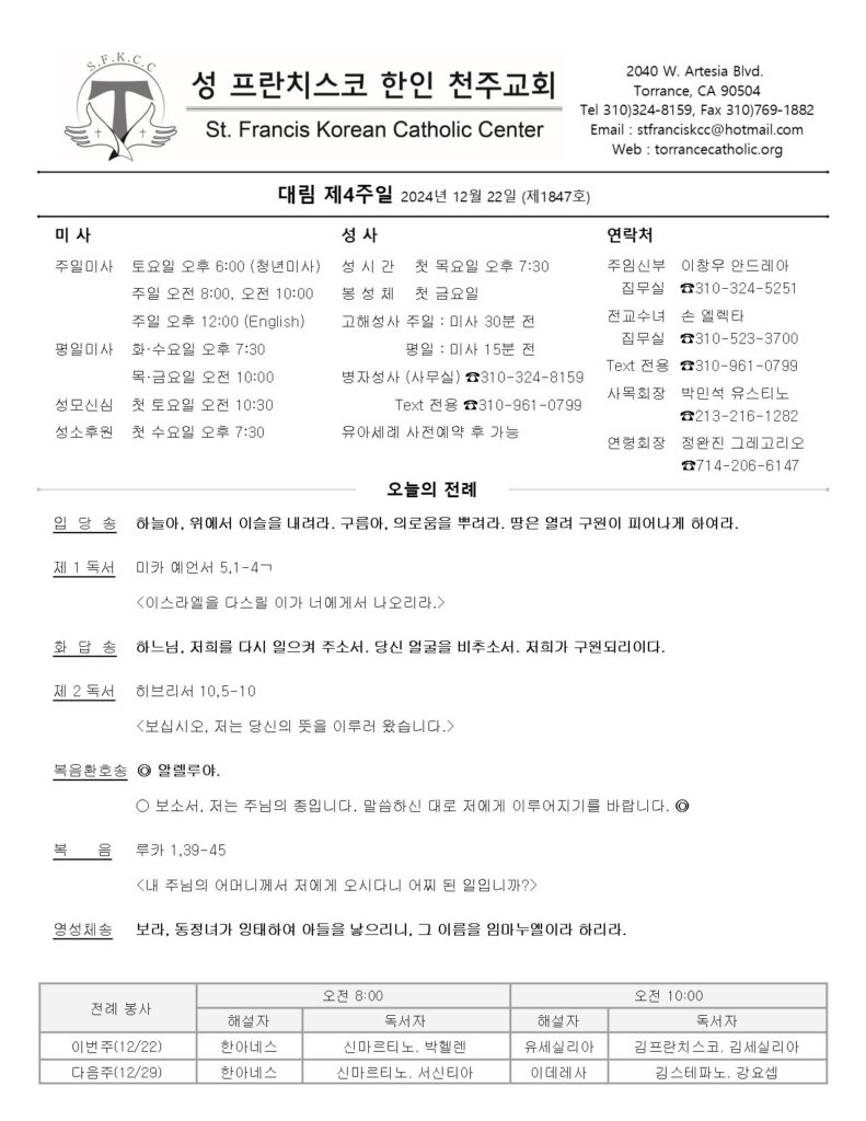 대림 제4주일 / 12.22.2024
