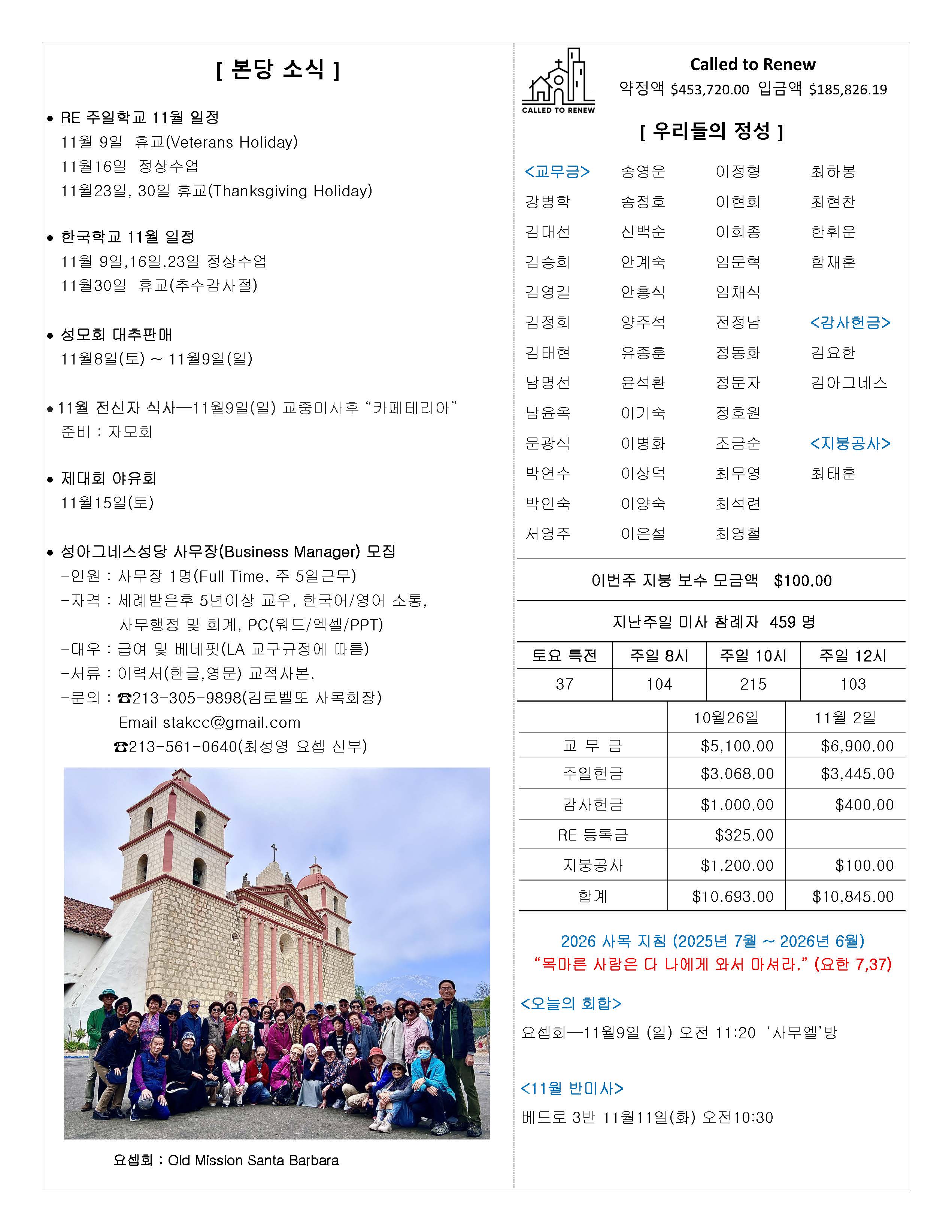 성당주요 행사일정