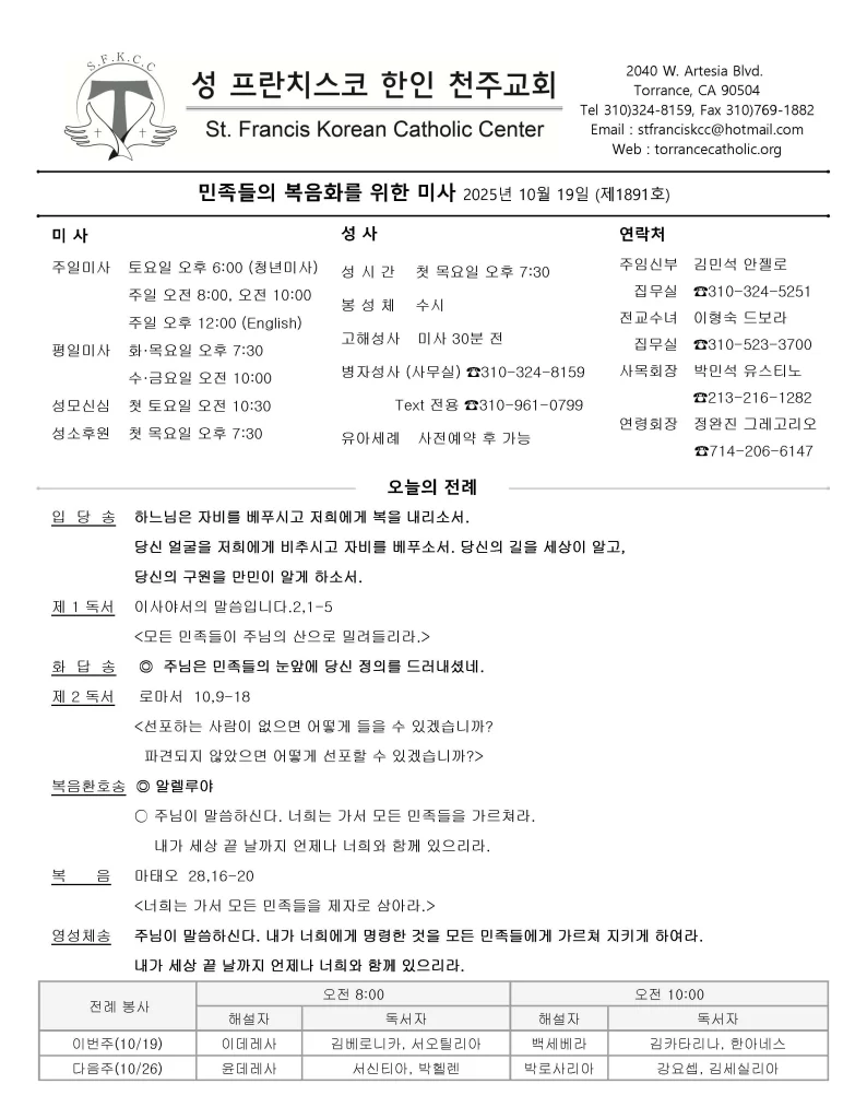 민족들의 복음화를 위한 미사 / 10.19.2025
