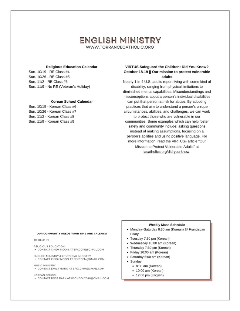 • 주일학교 | Religious Education