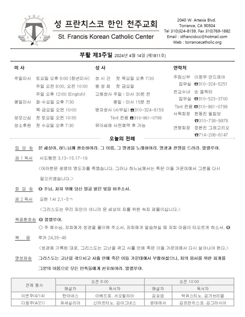 부활 제3주일 / 04.14.2024