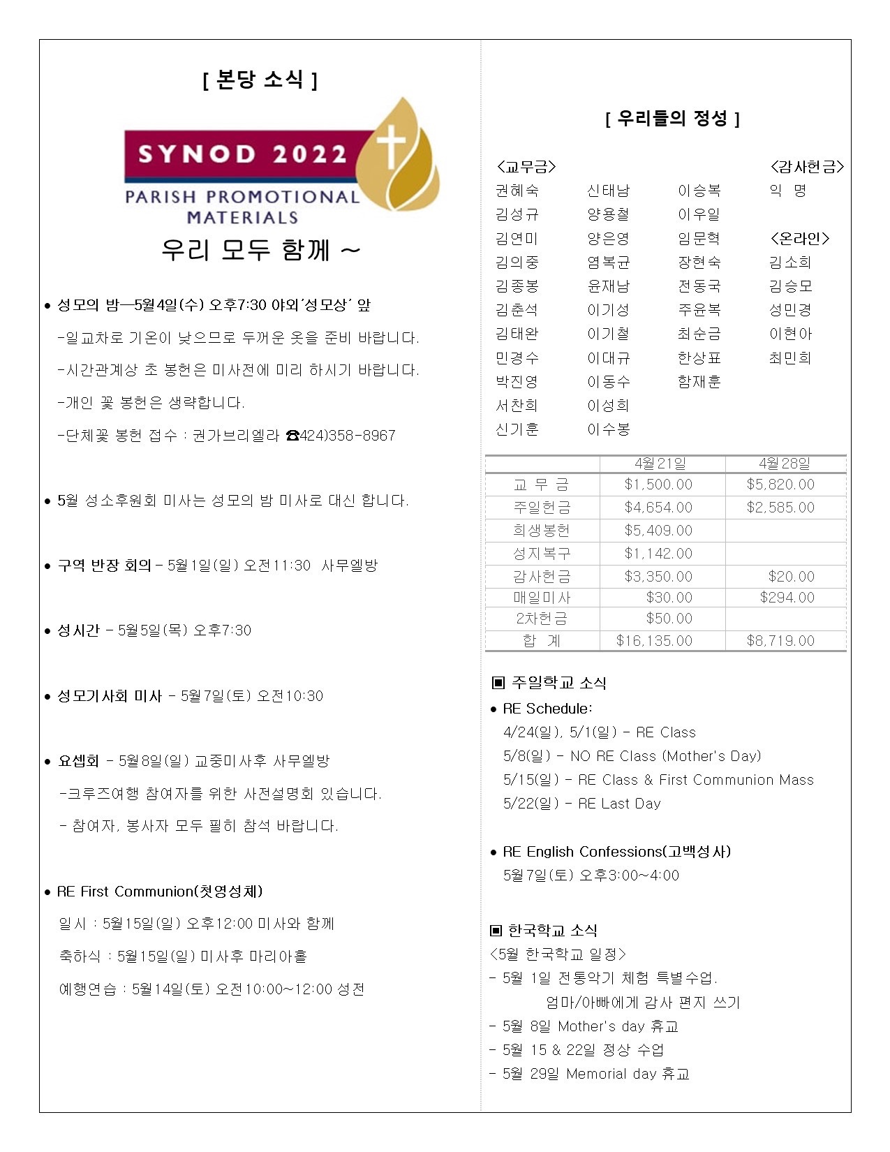 • 성당 행사일정