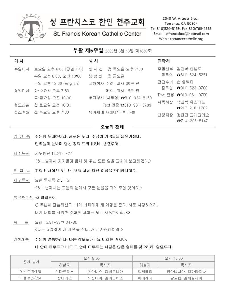 부활 제5주일 / 5.18.2025