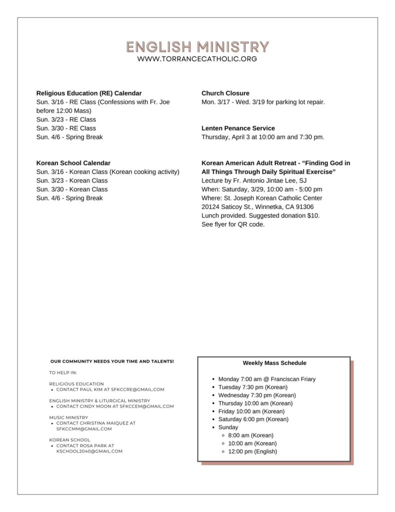 • Post author:St. Francis Korean Catholic Administrator