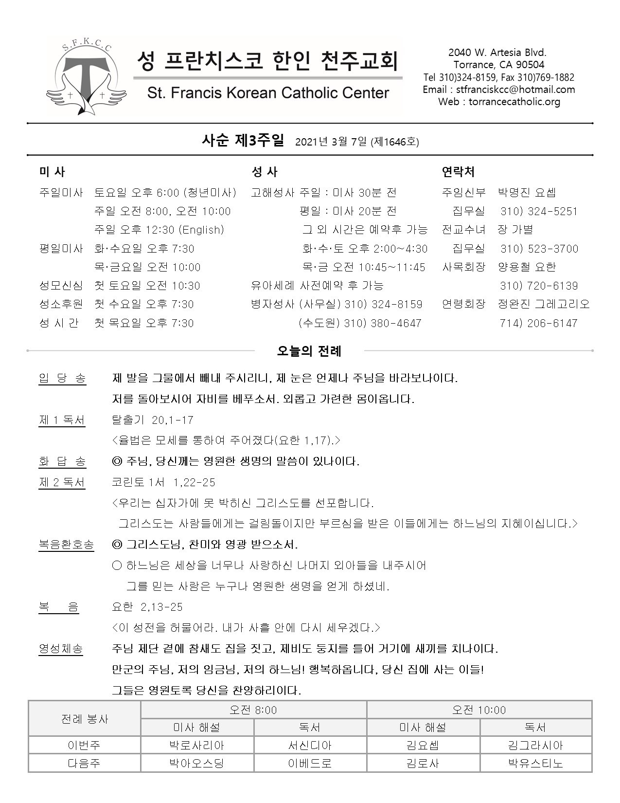 사순 제3주일 / 03.07.2021