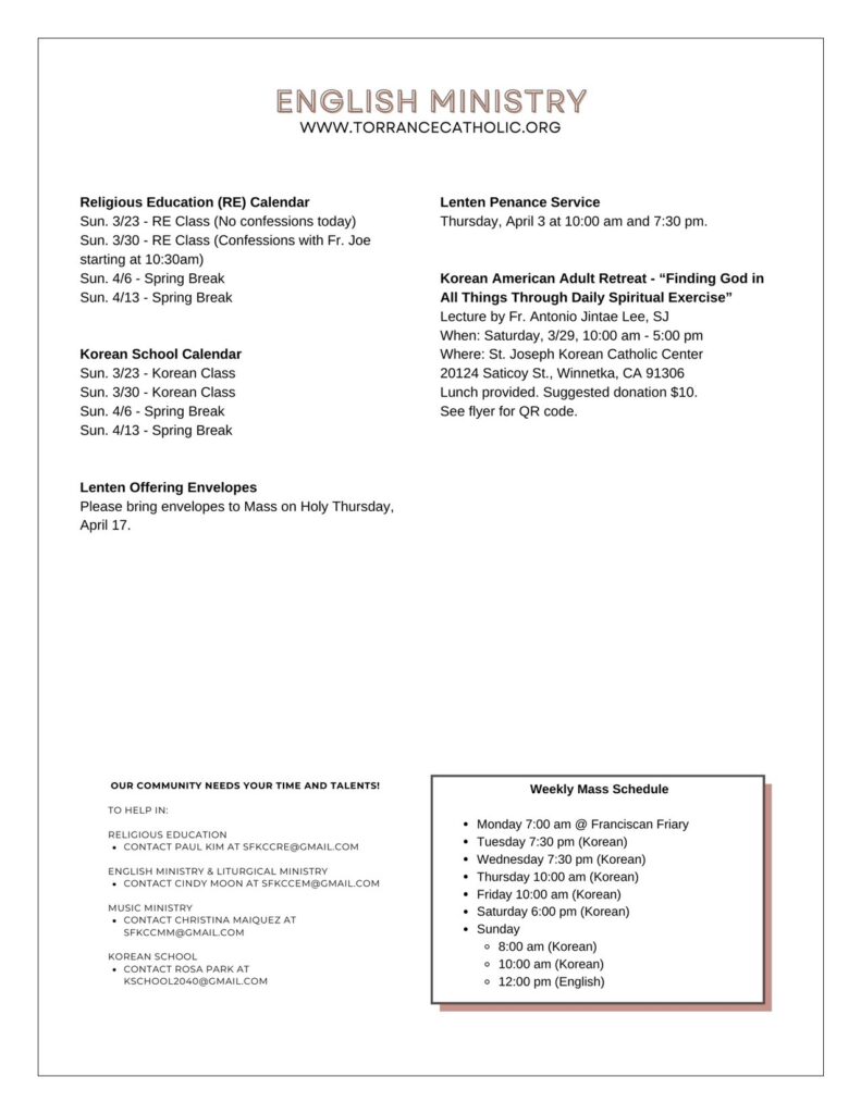 • Post author:St. Francis Korean Catholic Administrator