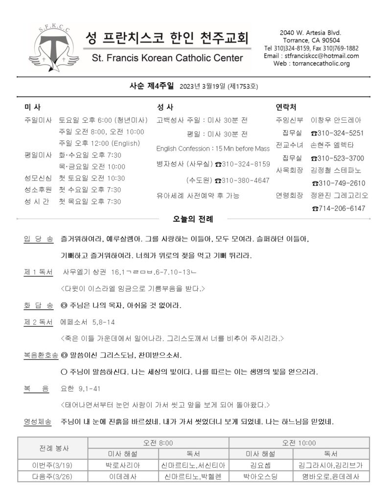 사순 제4주일 / 03.19.2023
