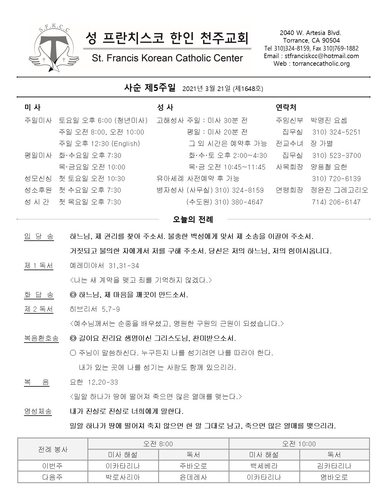 사순 제5주일 / 03.21.2021