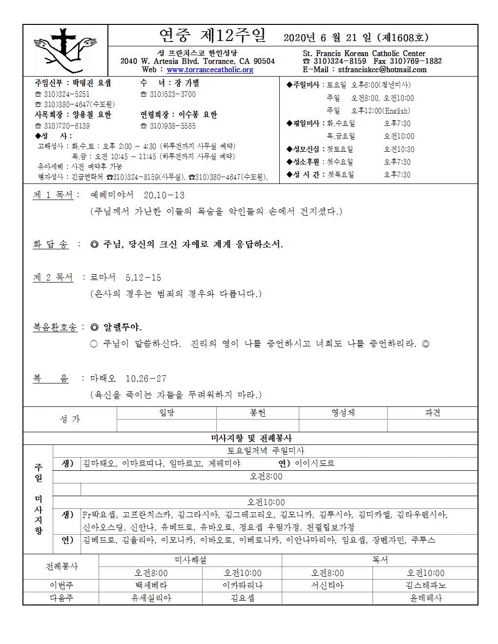 연중 제 12 주일 / 06.21.2020