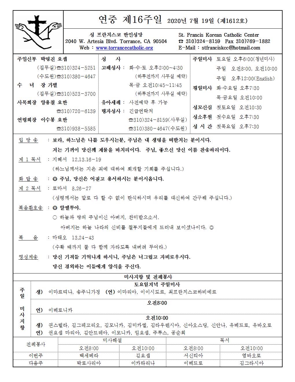 연중 제 16주일 / 07.19.2020