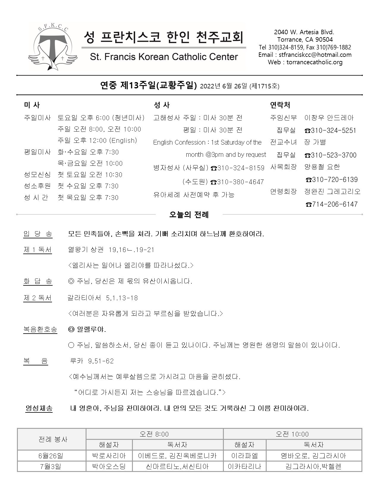 연중 제13주일 (교황주일) / 06.26.2022