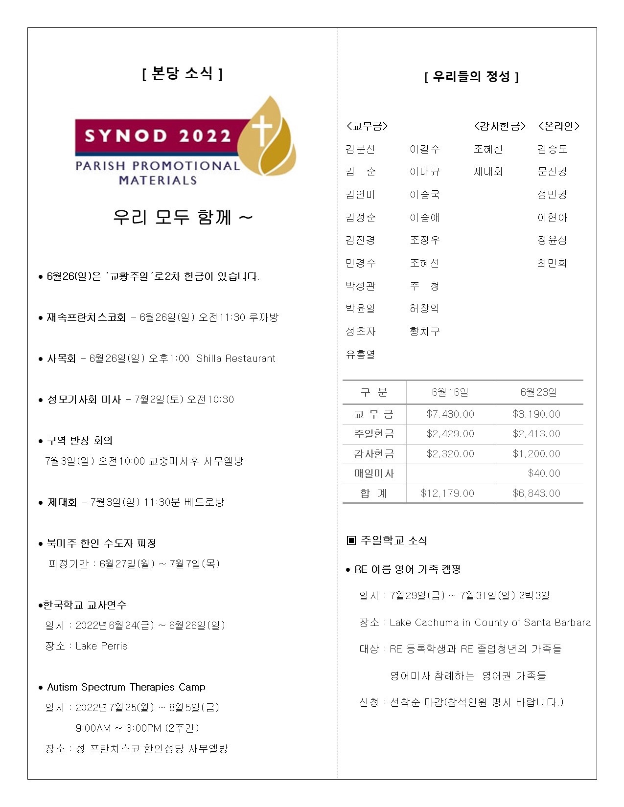 성당주요 행사일정