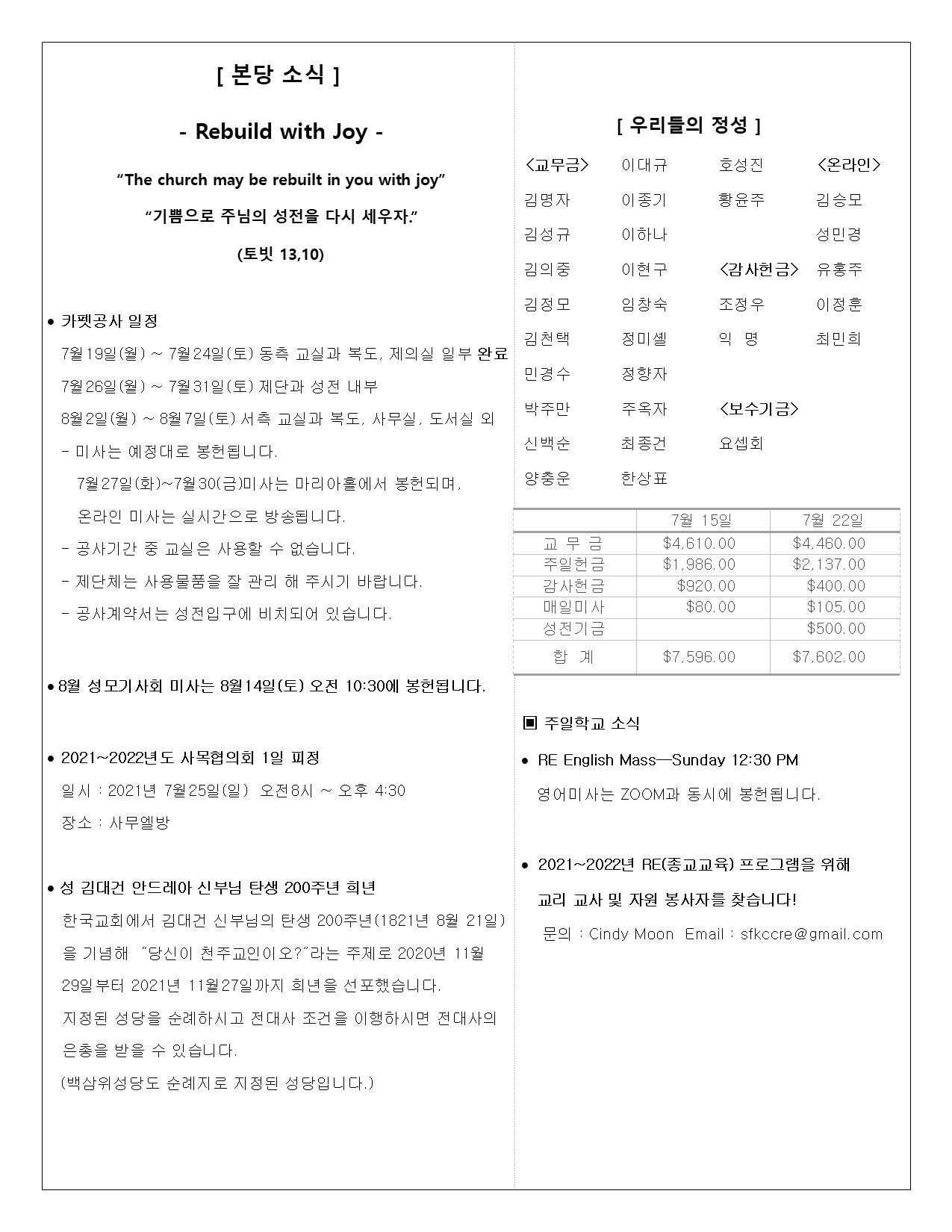 • 주일학교 | Religious Education