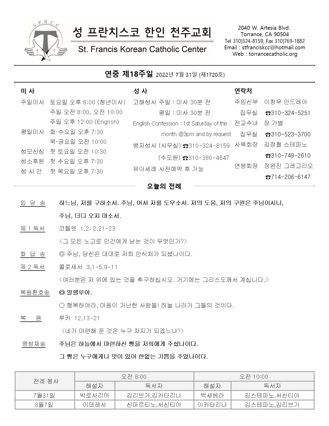 연중 제18주일 / 07.31.2022