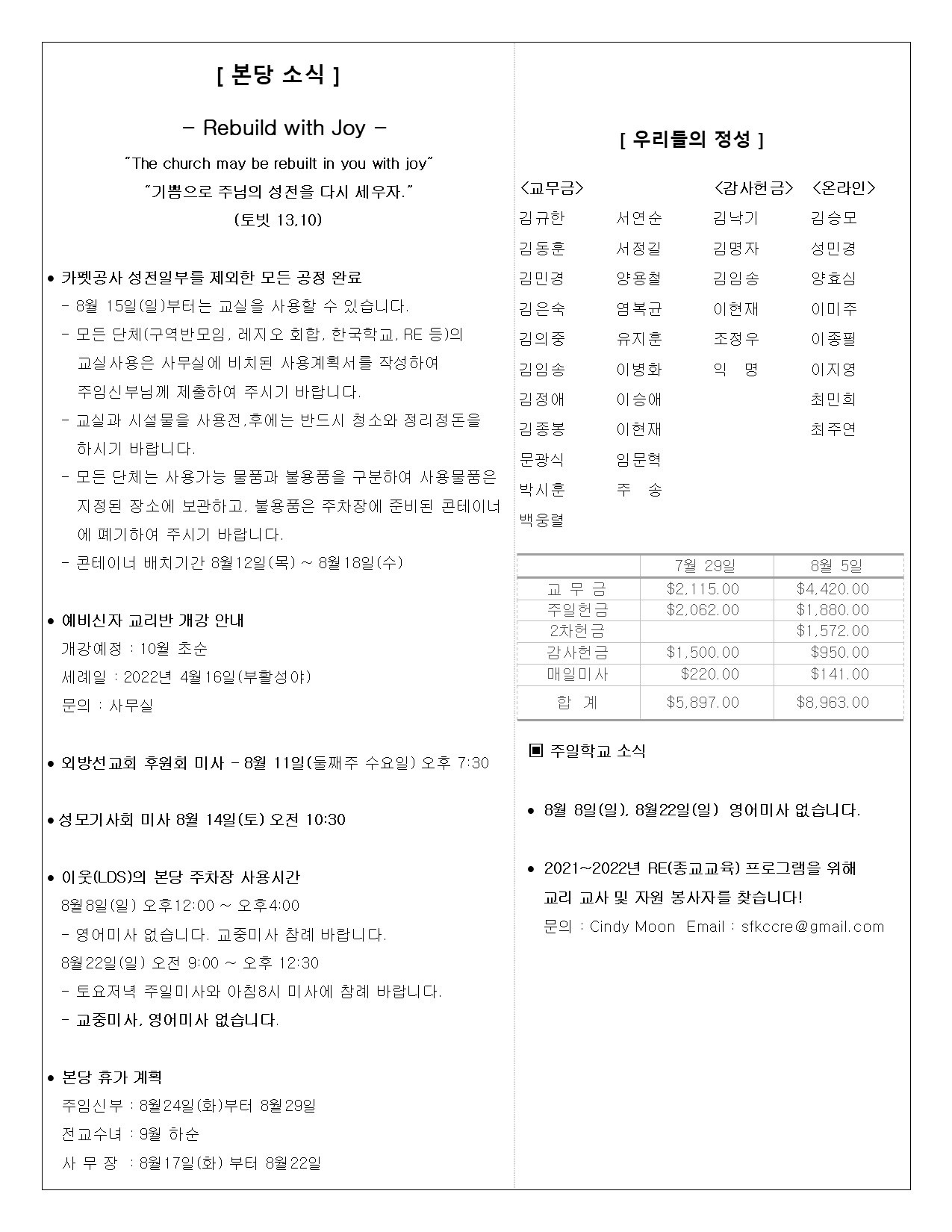 • 주일학교 | Religious Education