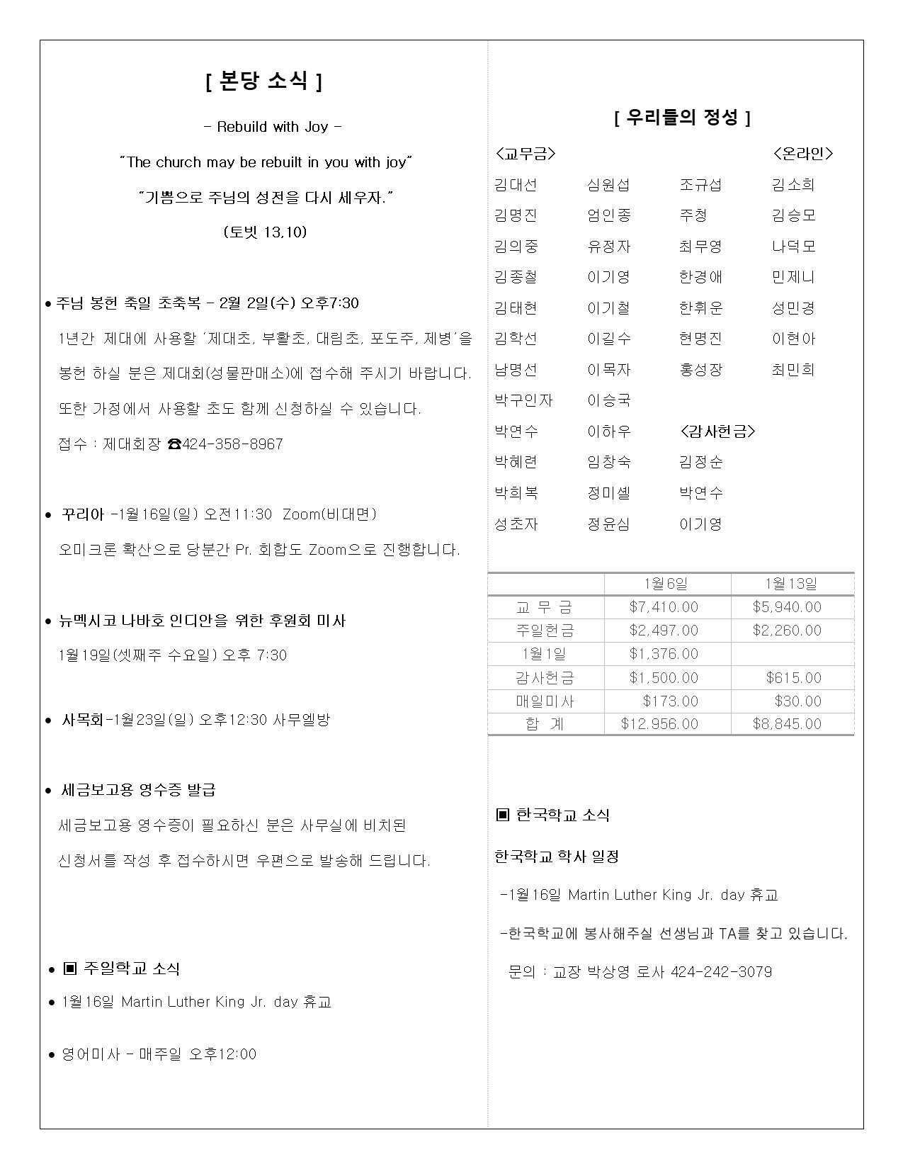 • 주일학교 | Religious Education