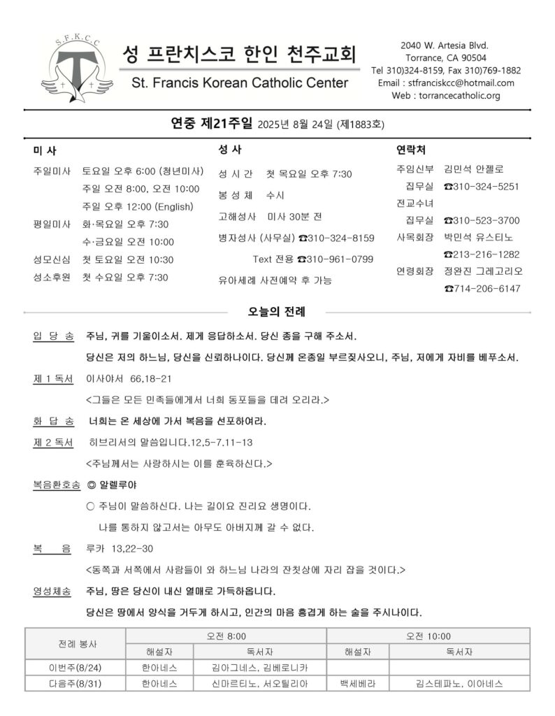 연중 제21주일 / 08.24.2025