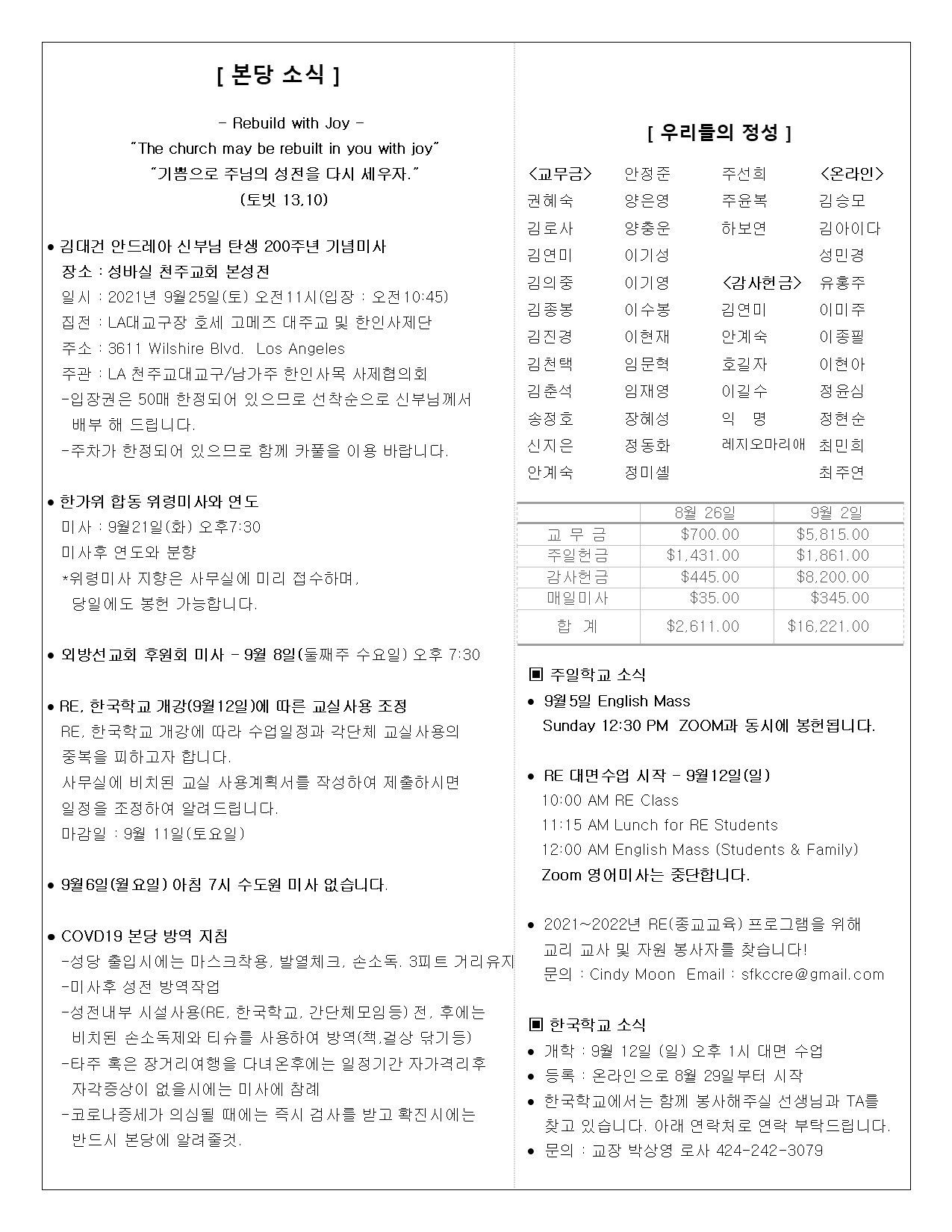 • 주일학교 | Religious Education