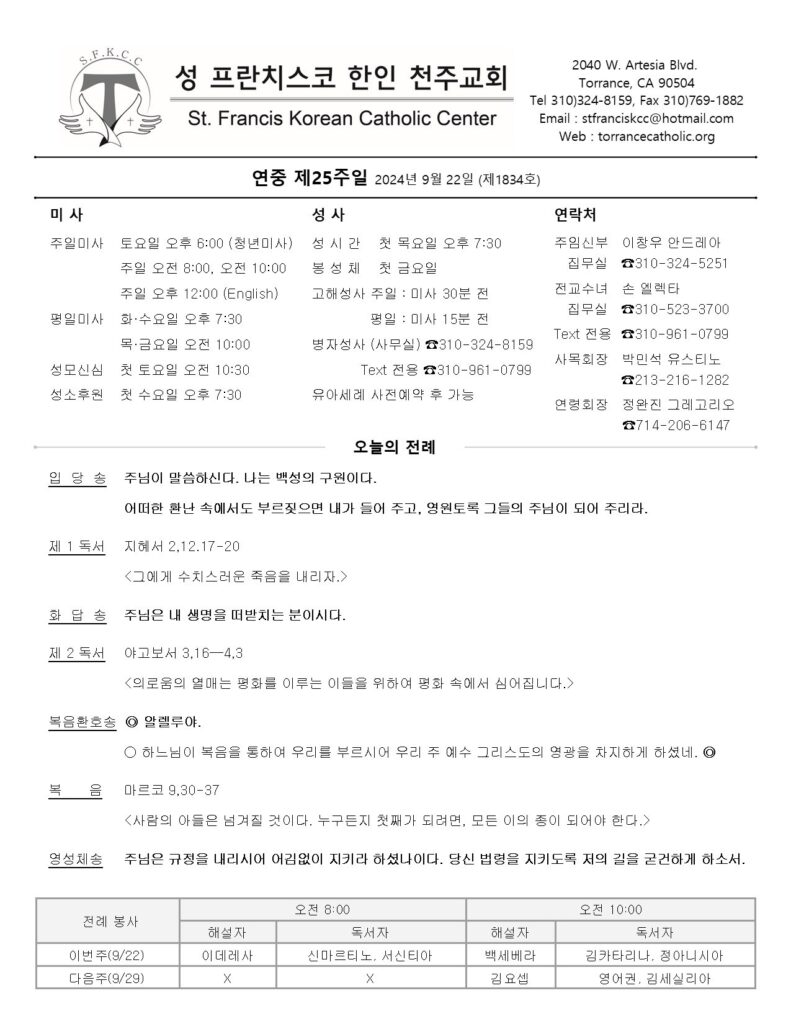 연중 제25주일 / 09.22.2024