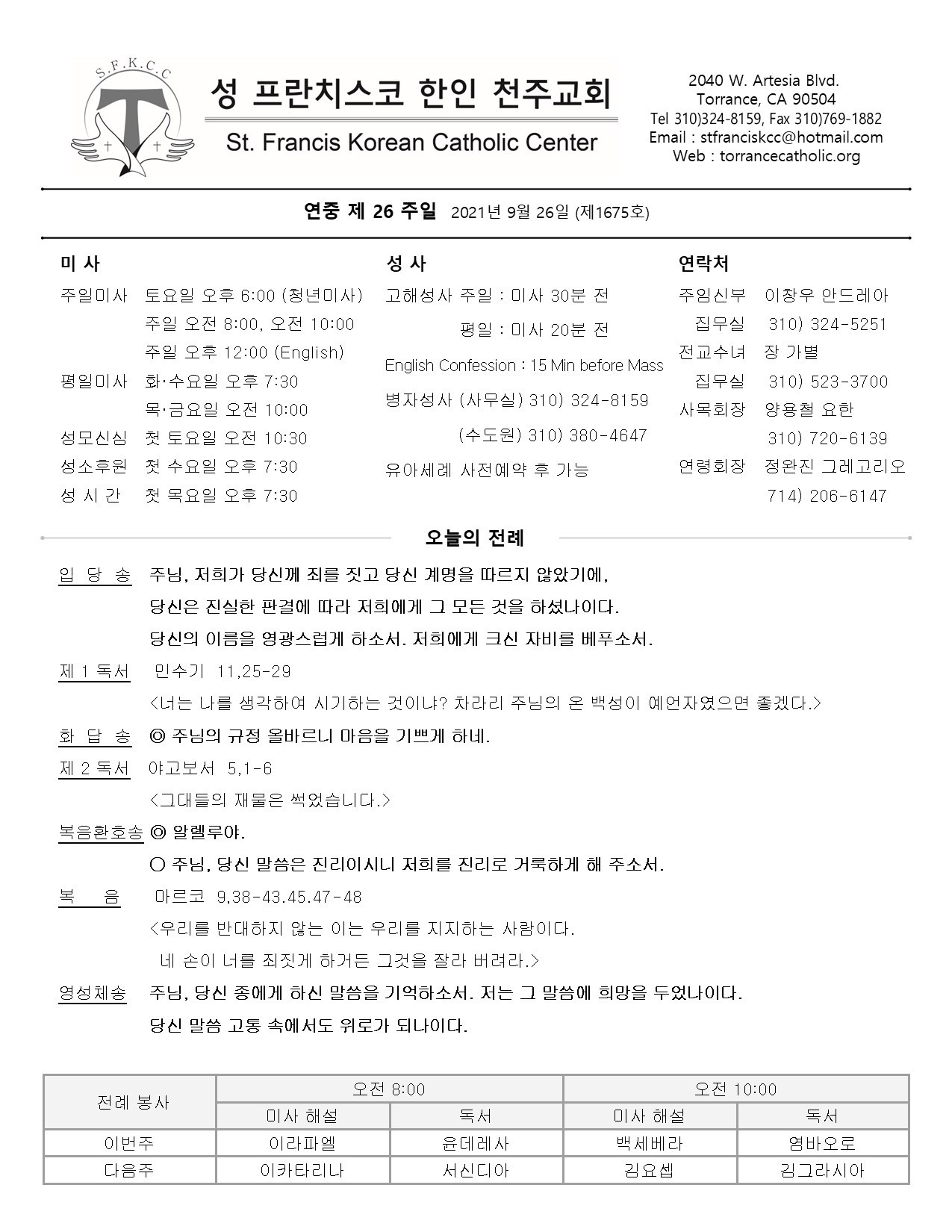 연중 제26주일 / 09.26.2021