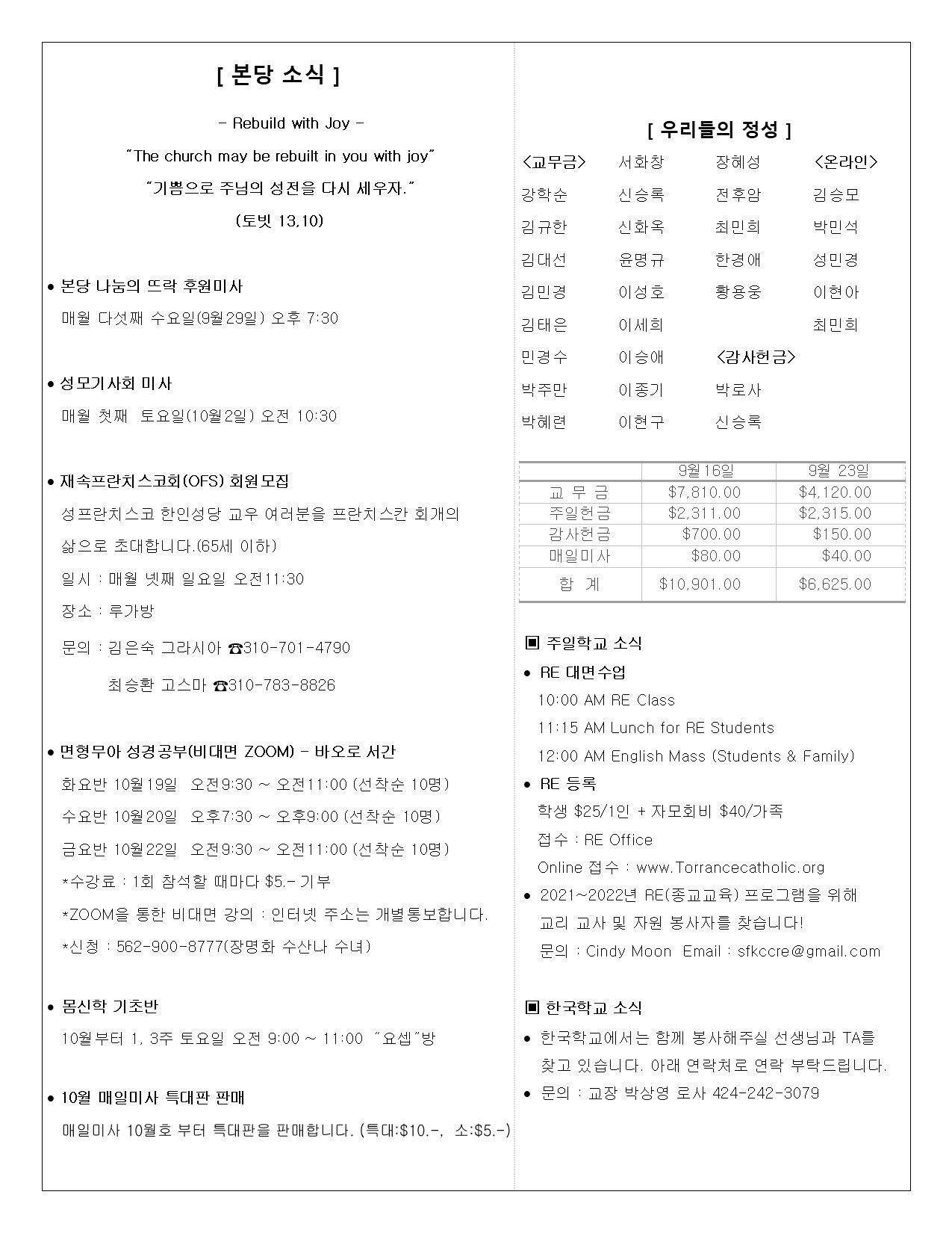• 주일학교 | Religious Education