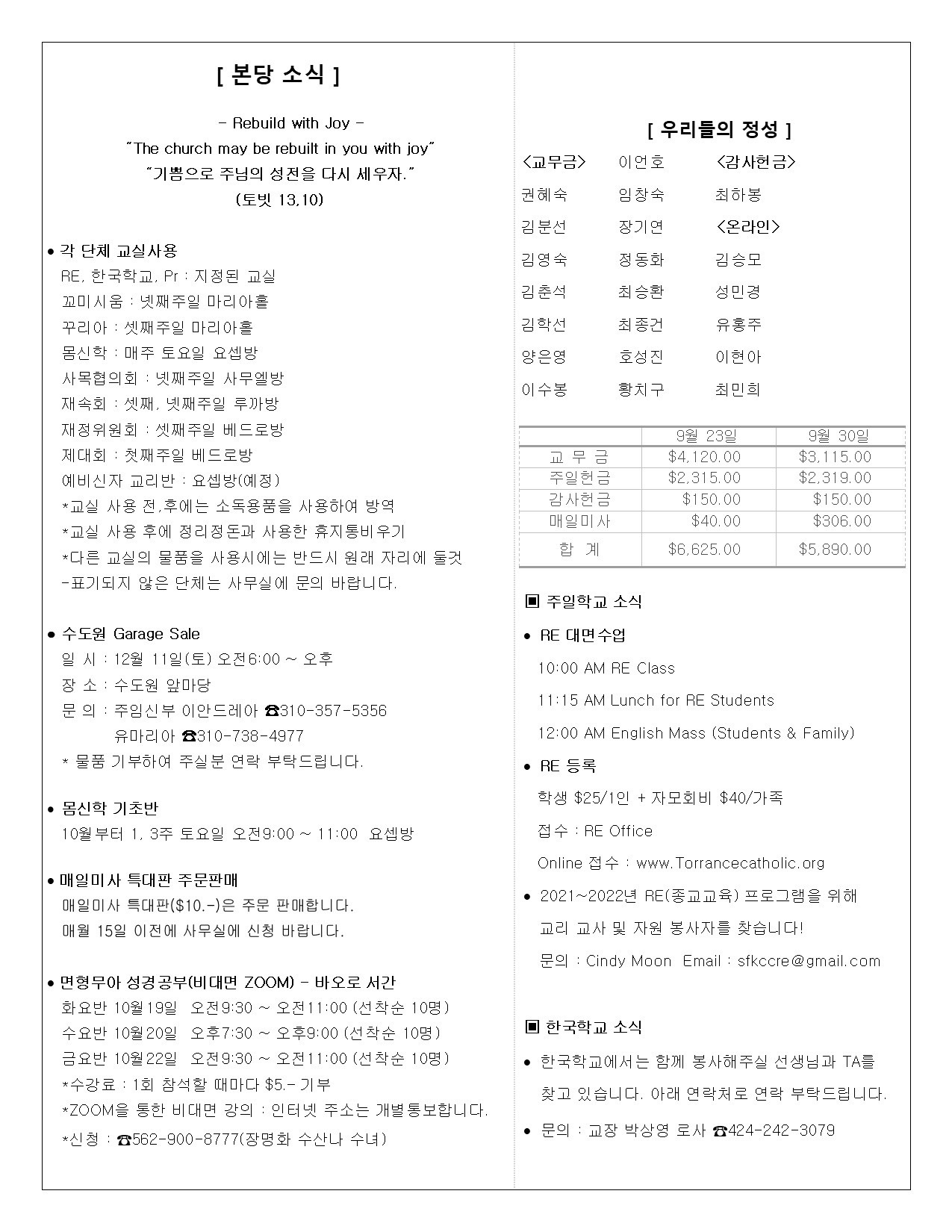 • 주일학교 | Religious Education