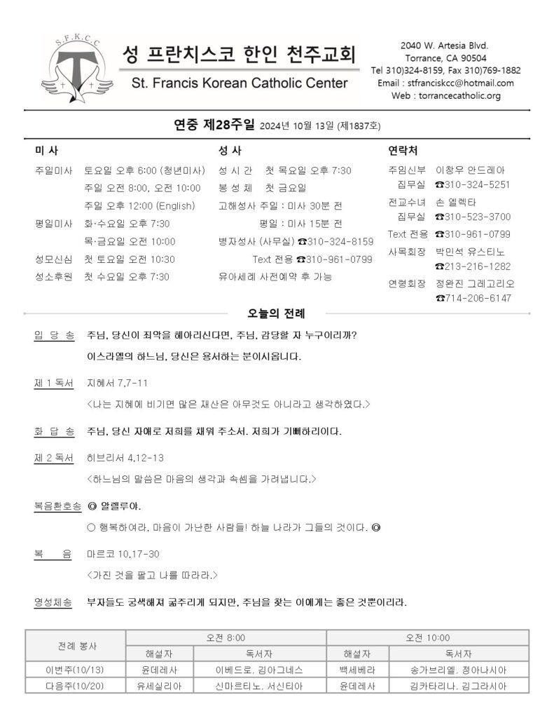 연중 제28주일 / 10.13.2024