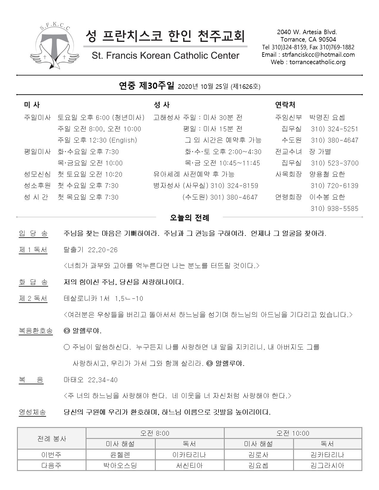 연중 제30주일 / 10.25.2020