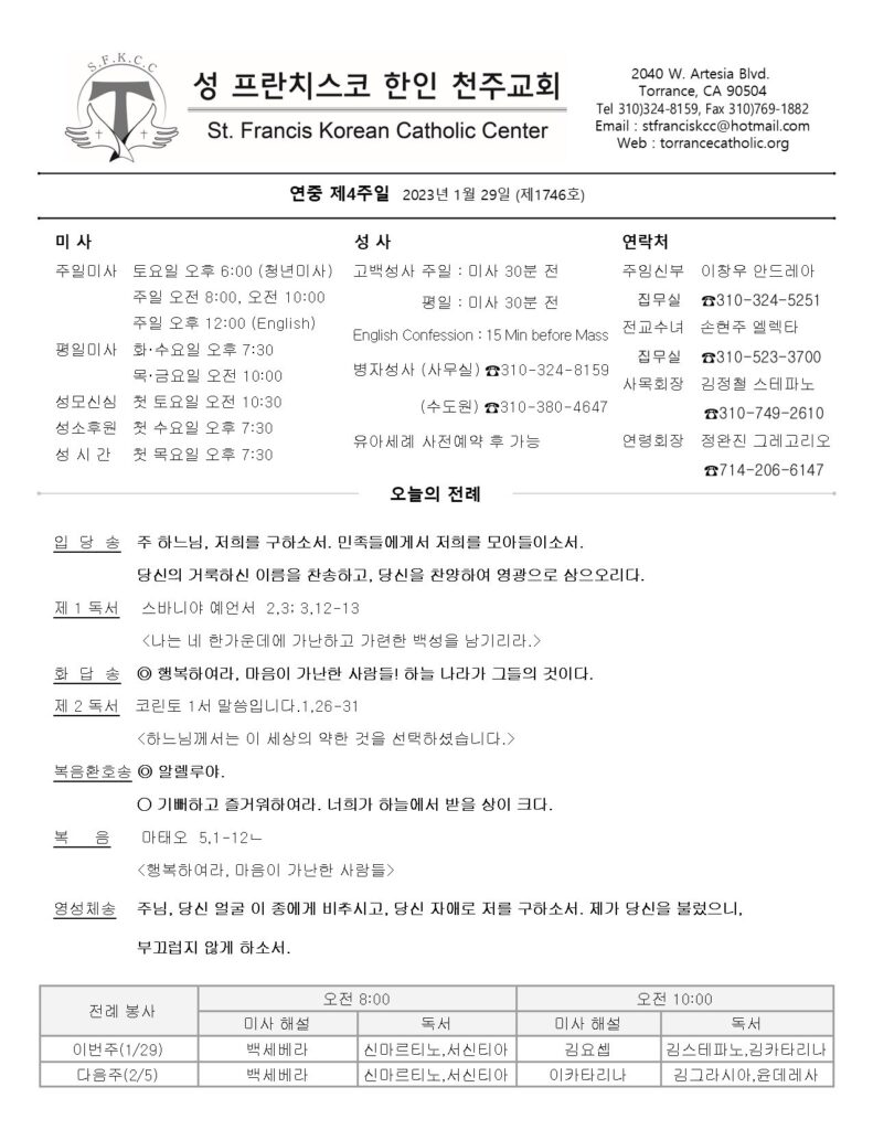 연중 제4주일 / 01.29.2023