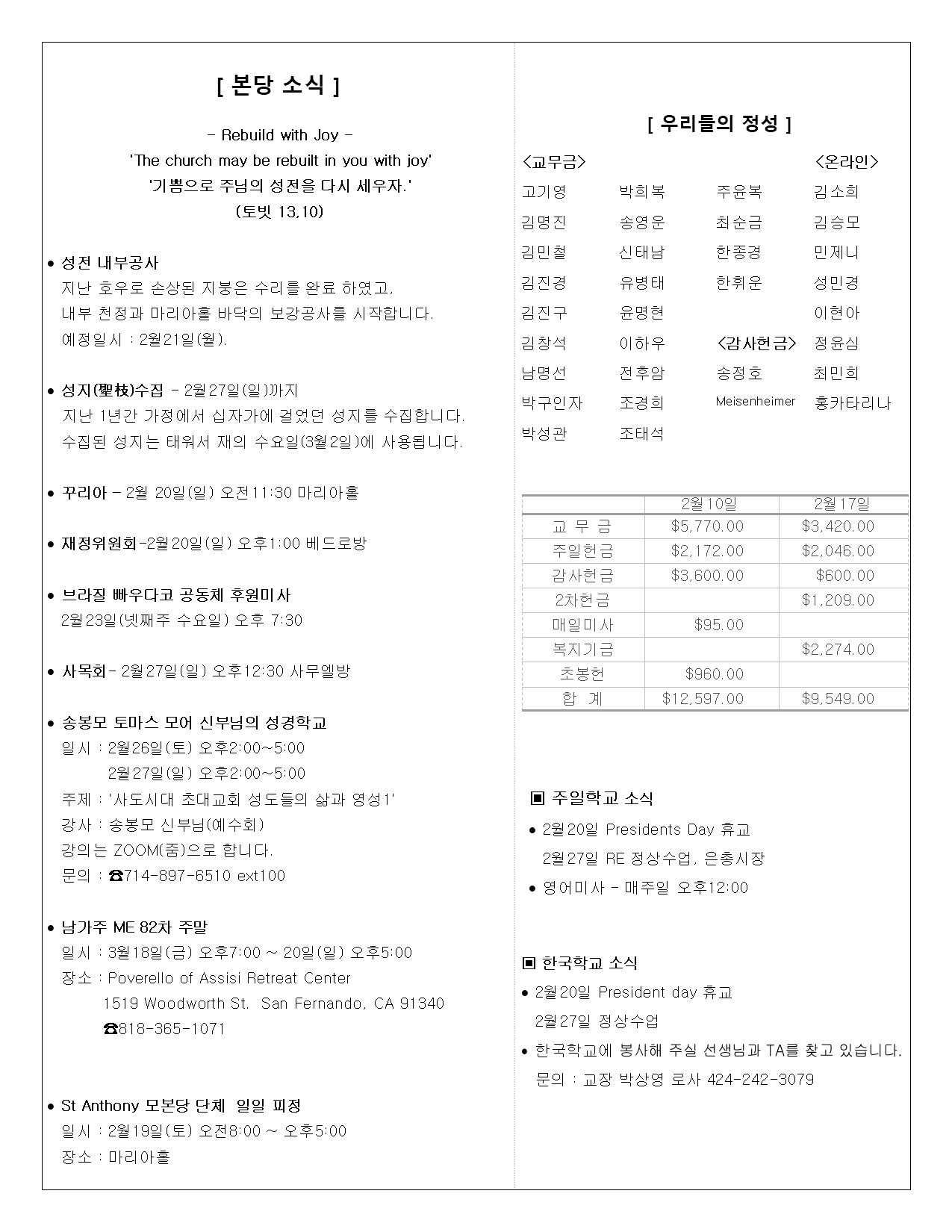 • 성당 행사일정