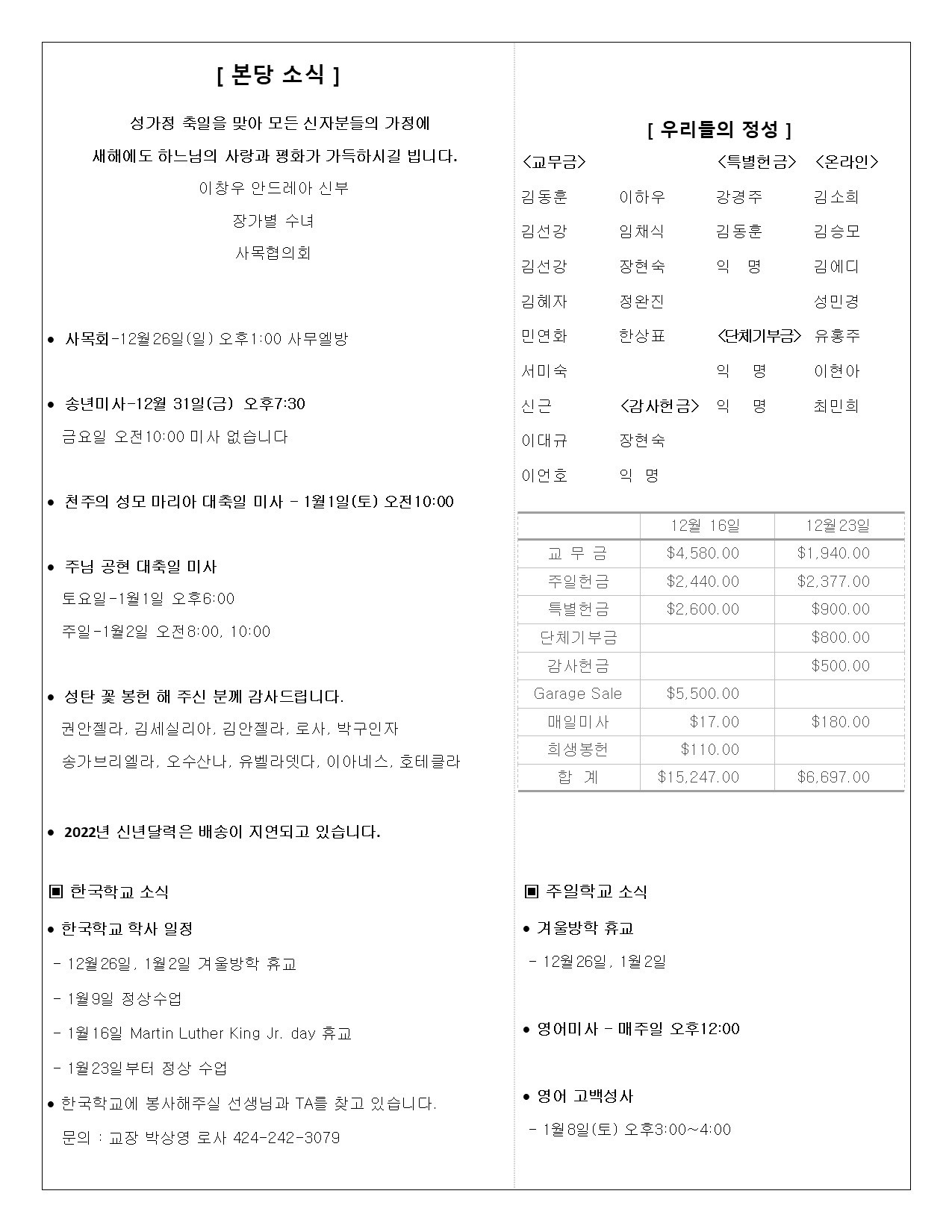 성당주요 행사일정
