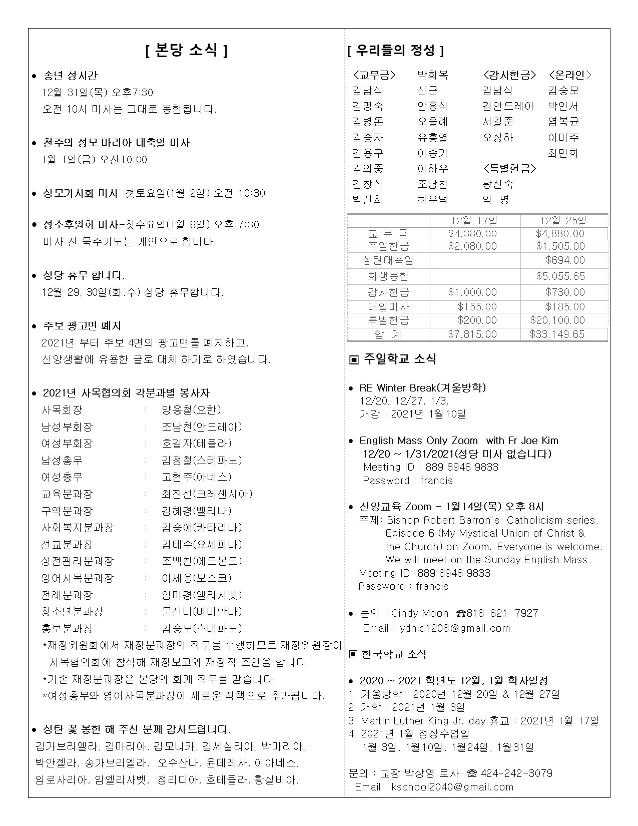 • 주일학교 | Religious Education