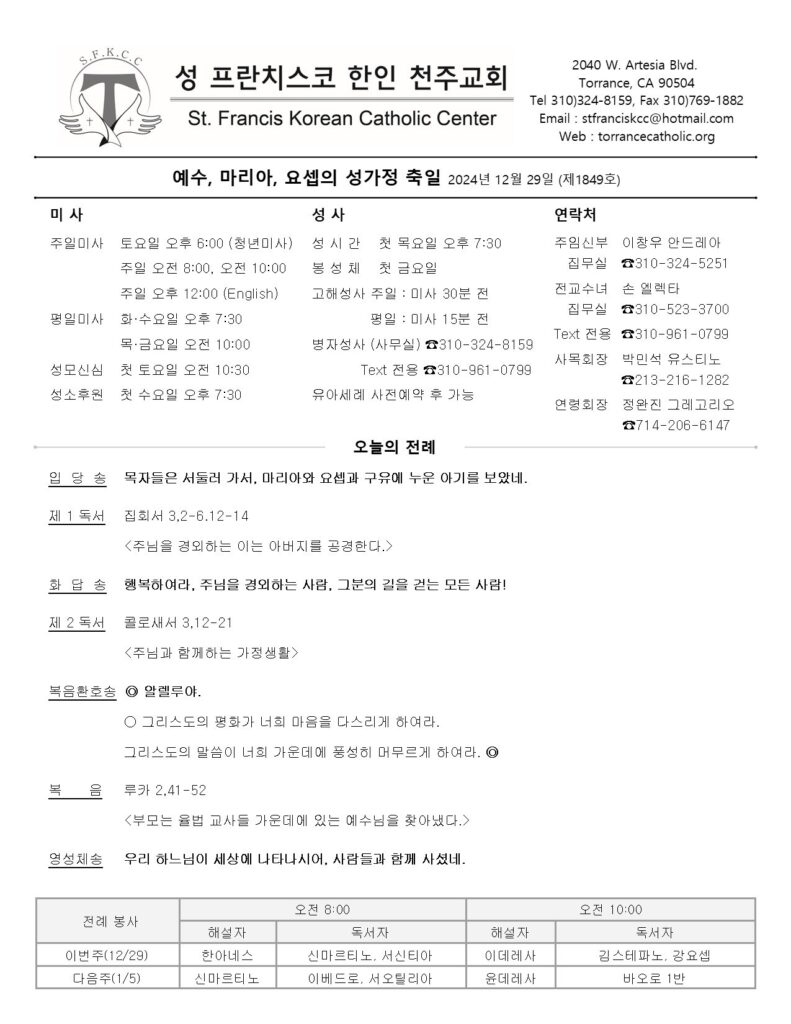 예수, 마리아, 요셉의 성가정 축일 / 12.29.2024