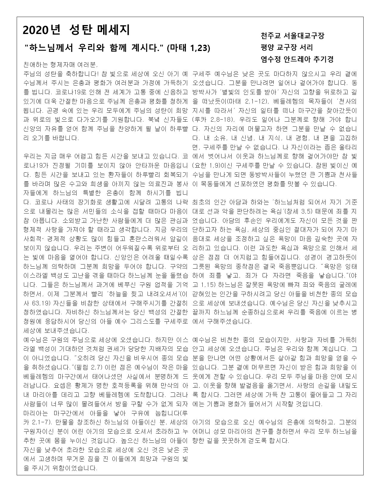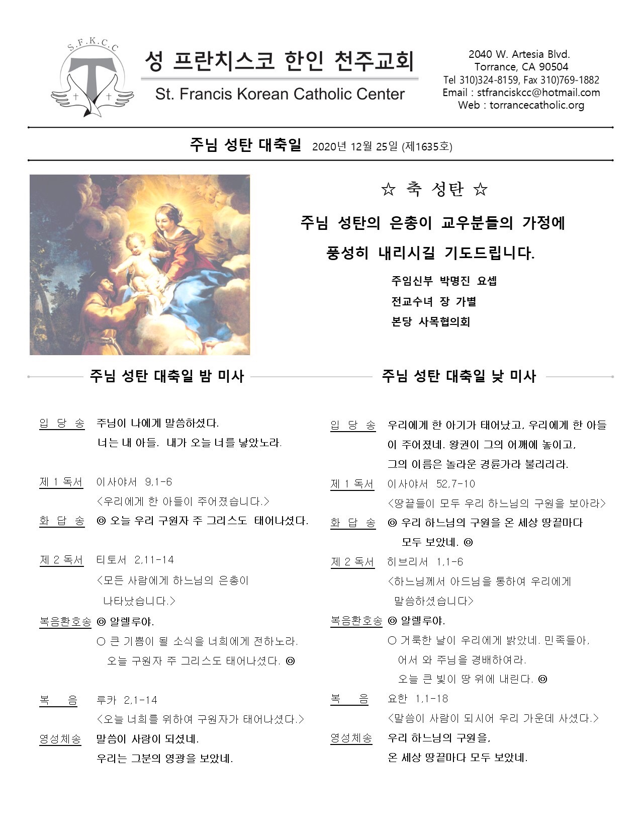 주님 성탄 대축일 / 12.25.2020