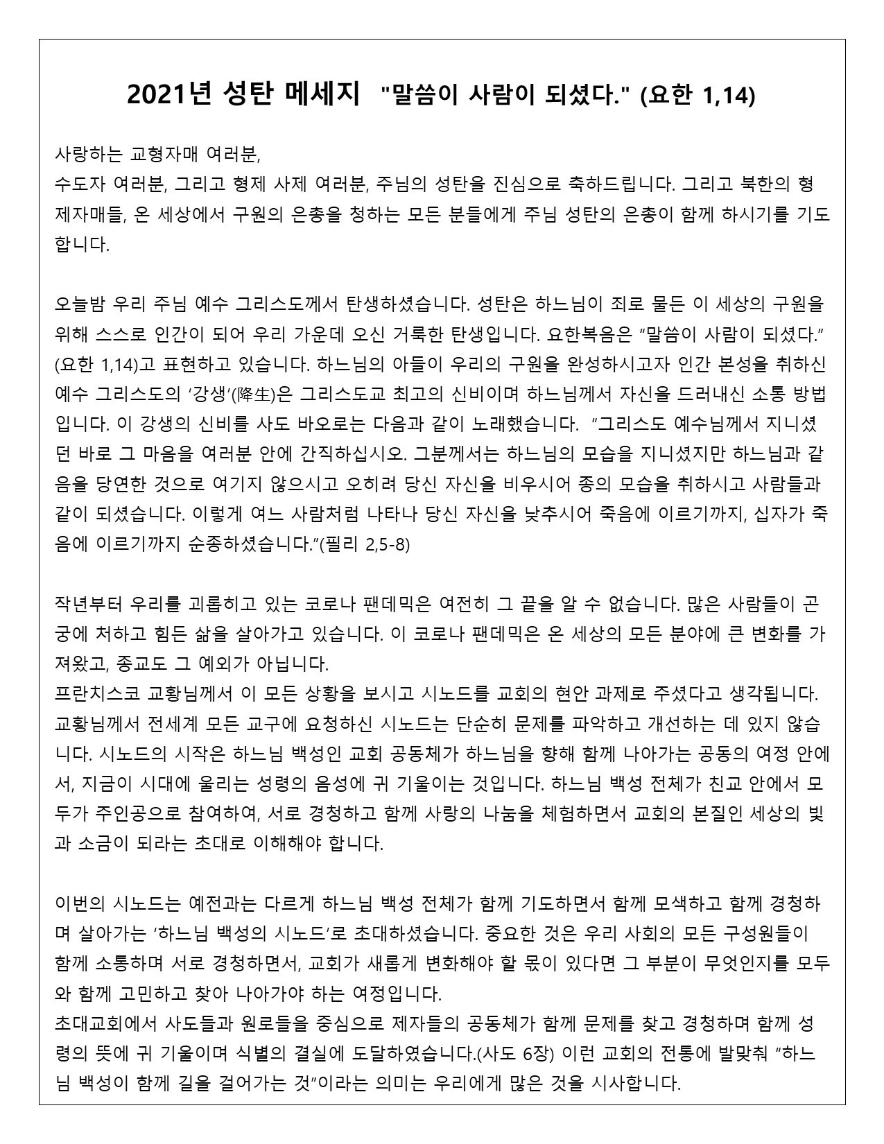 주님 성탄 대축일 / 12.25.2021