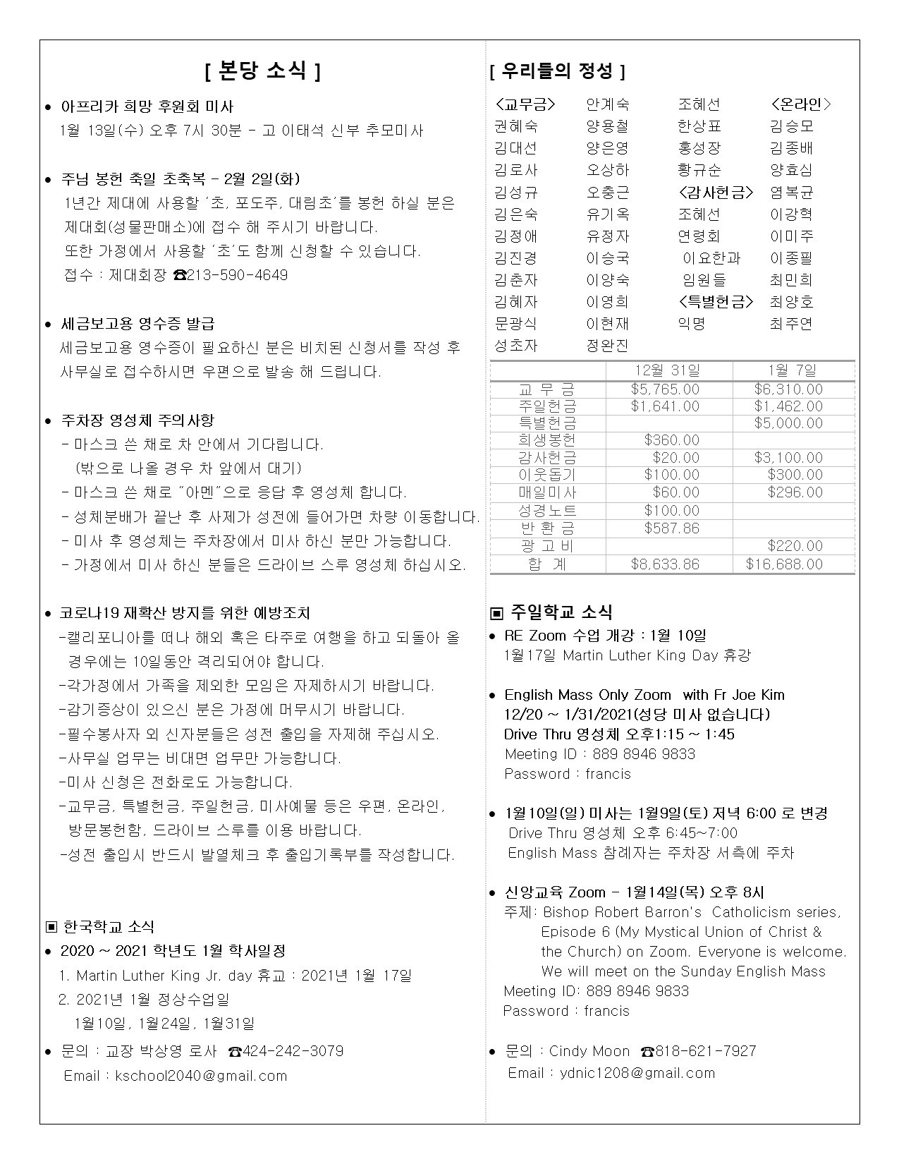 • 주일학교 | Religious Education