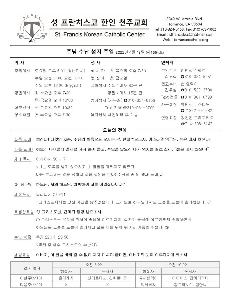 주님 수난 성지 주일/ 04.13.2025