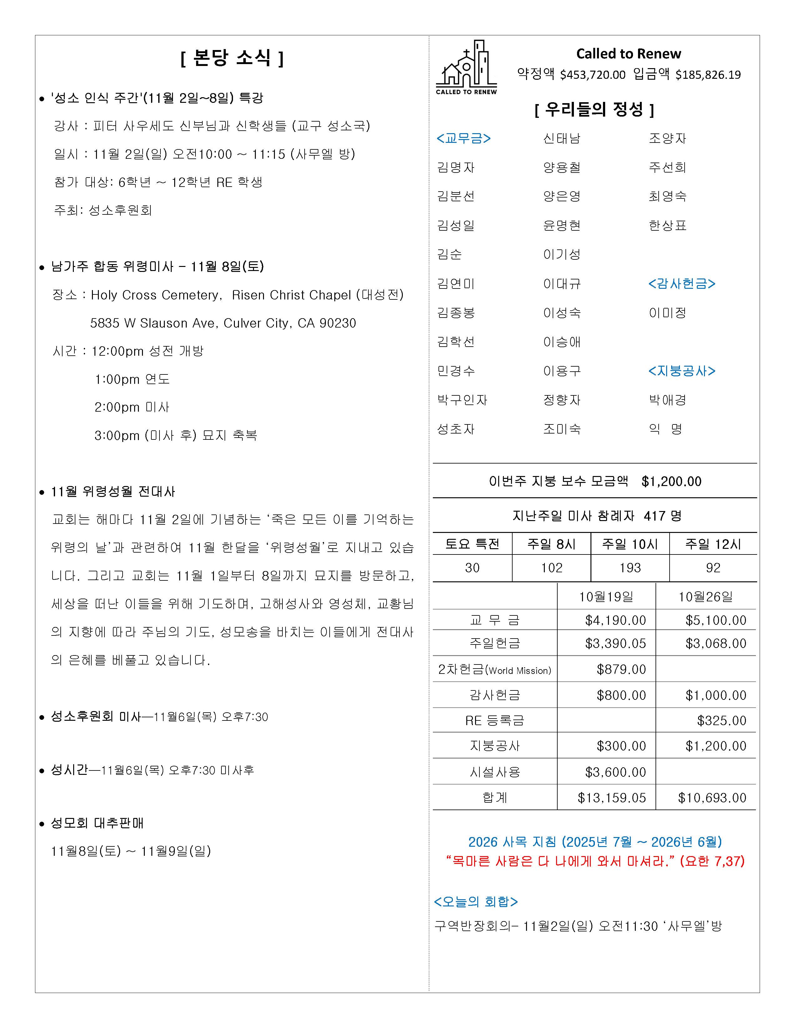 성당주요 행사일정