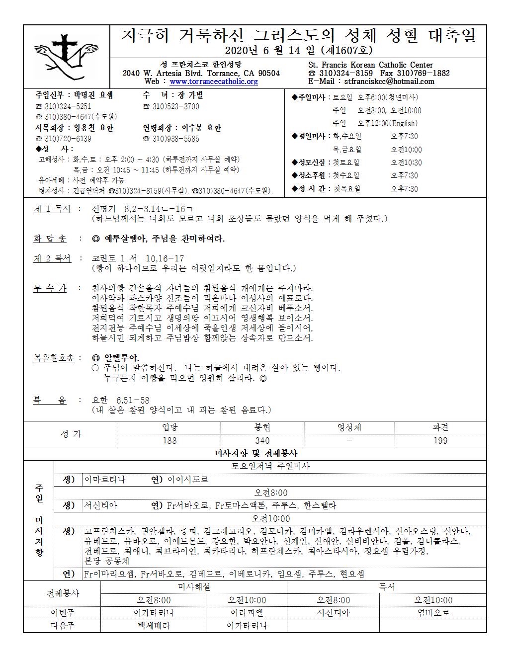 주일: 오전 8시; 10시 (한국어)