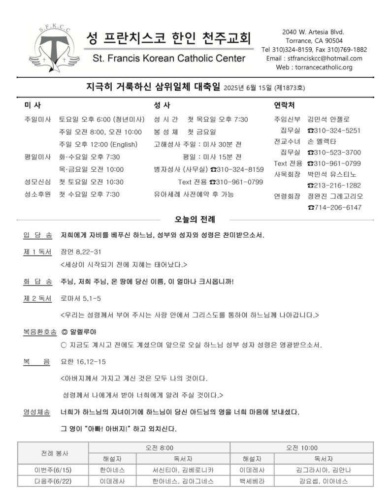 지극히 거룩하신 삼위일체 대축일 / 06.15.2025