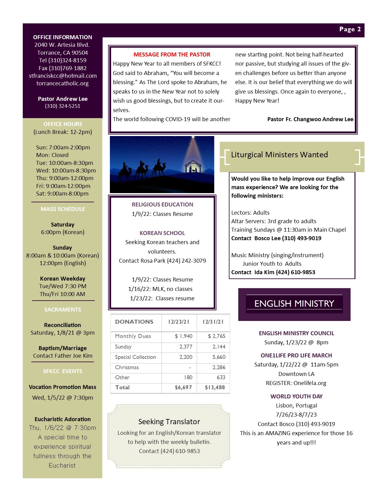 • 주일학교 | Religious Education