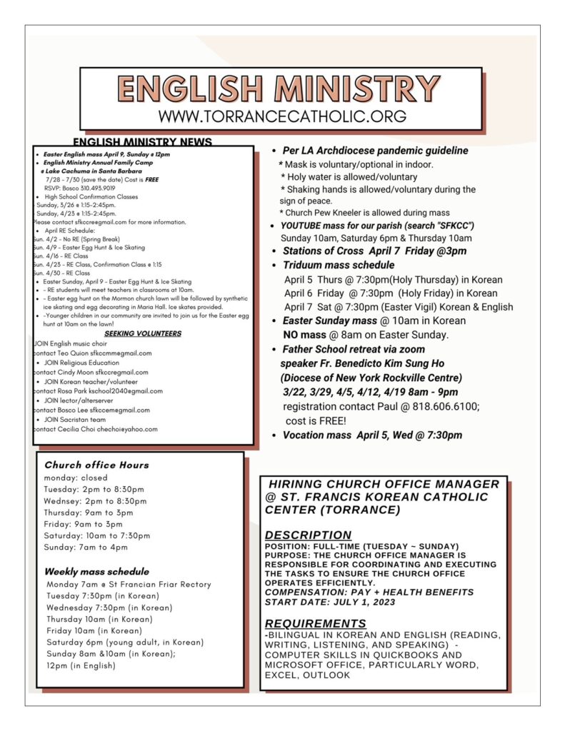 • Post author:St. Francis Korean Catholic Administrator