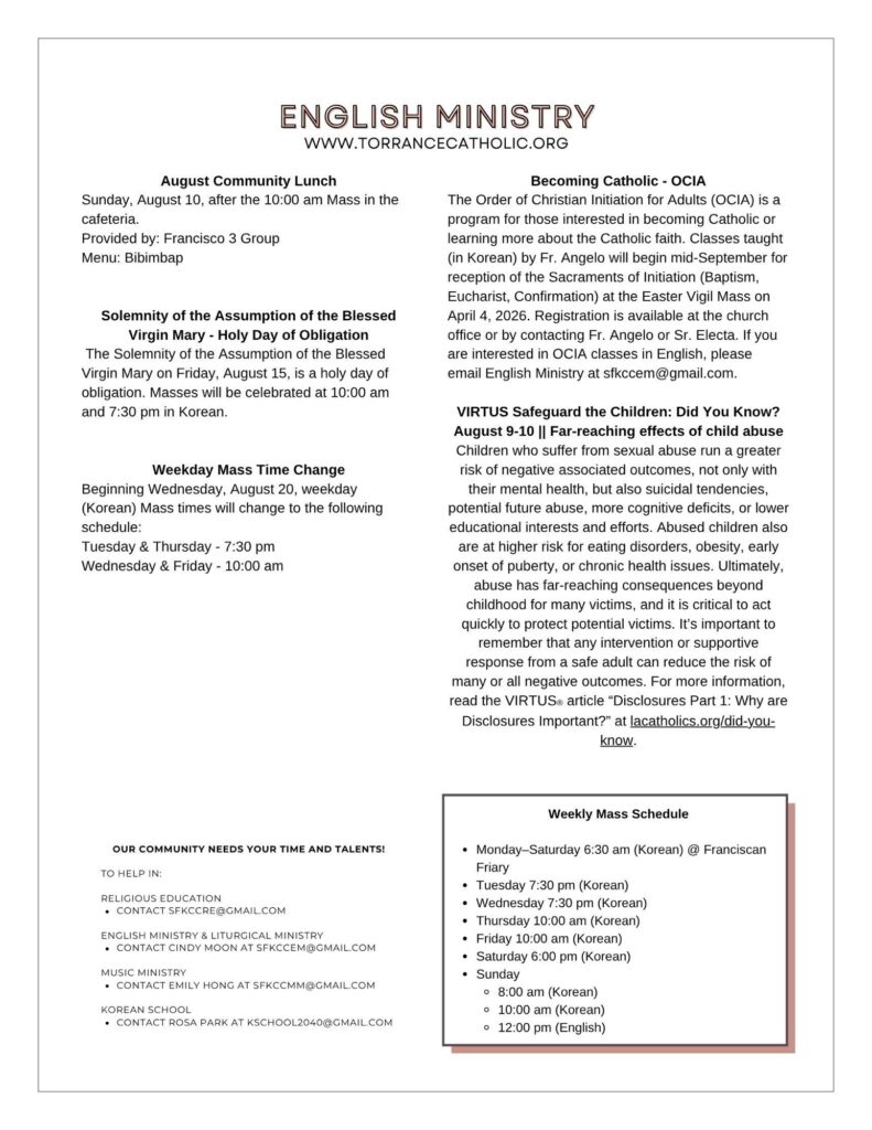 • Post author:St. Francis Korean Catholic Administrator