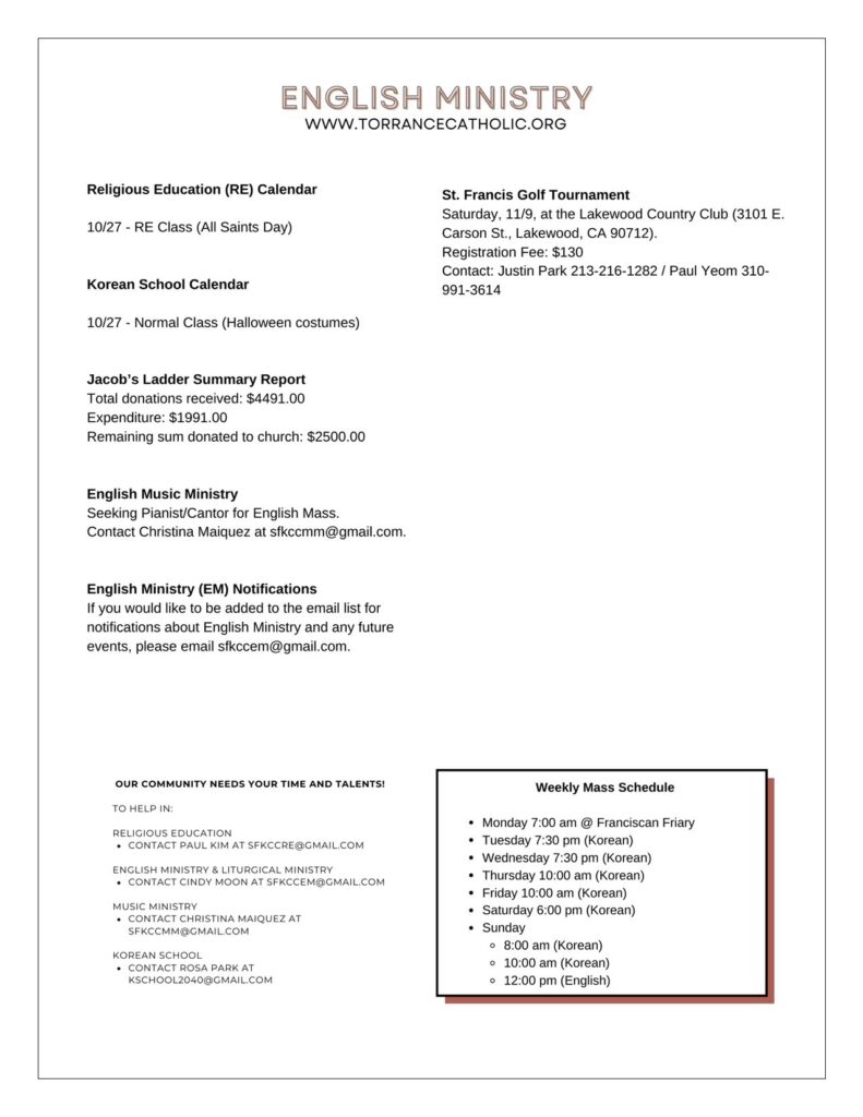 • Post author:St. Francis Korean Catholic Administrator